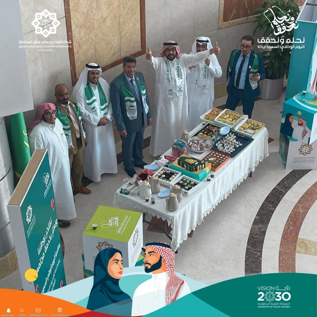 On the anniversary of the 93rd Saudi National Day, we at Dr. Fahd Al-refaei & Partners Law Firm and Legal Consultations celebrated this great day. By sharing the joy with our community and providing our services in the field of consulting. We renew loyalty and pride in our dear country and are proud to serve our community #Saudi_National_Day93 #WeDreamAndAchieve