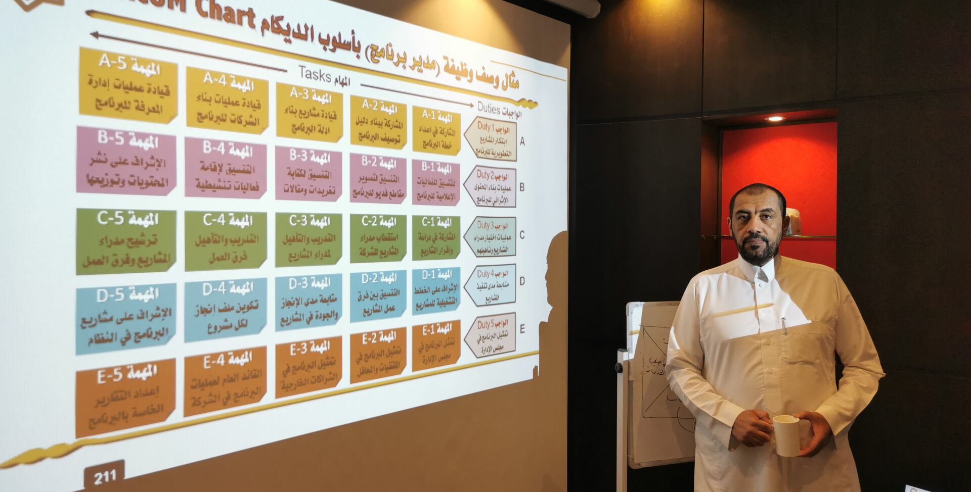 ضمن ورش عمل التطوير الإداري المنعقدة في شركة الرفاعي والدهش للمحاماة والاستشارات القانونية تم بحمد الله تنفيذ ورشة عمل تطبيق طريقة الديكام DACUM Chart في تحديد الاحتياج التدريبي للمحامين